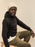 Sportlich-schickes Kapuzen-Sweatshirt mit Känguru-Tasche und kleinem sichtbaren Label „Studio Sylt by roy:“ am unteren Bündchen vorne rechts. Mögliche Farben sind Schwarz oder Dunkelblau.